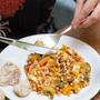 - In the meantime, wash the vegetables. Chop the leek into fine strips and dice the peppers. Heat the olive oil in a frying pan and sauté the vegetables on low heat until golden brown.