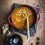 Add 200g chickpeas, peeled tomatoes, bouillon and spices and simmer on low heat for about 10 minutes. Then mix the soup well with lemon juice, salt and pepper to taste.